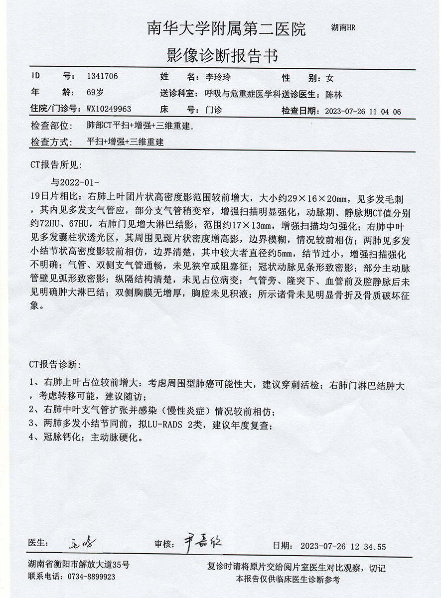 2023-7-26:南华附二肺部CT:考虑周围型肺癌